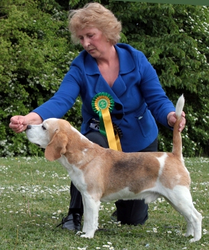 Gus winning BVIS at The Beagle Club Champ show, June 2010 - Judges Penny Carmichael & Eleanor Bothwell